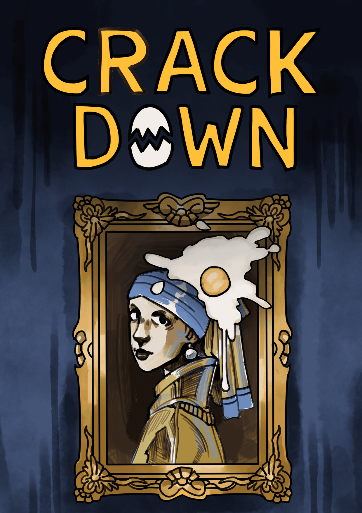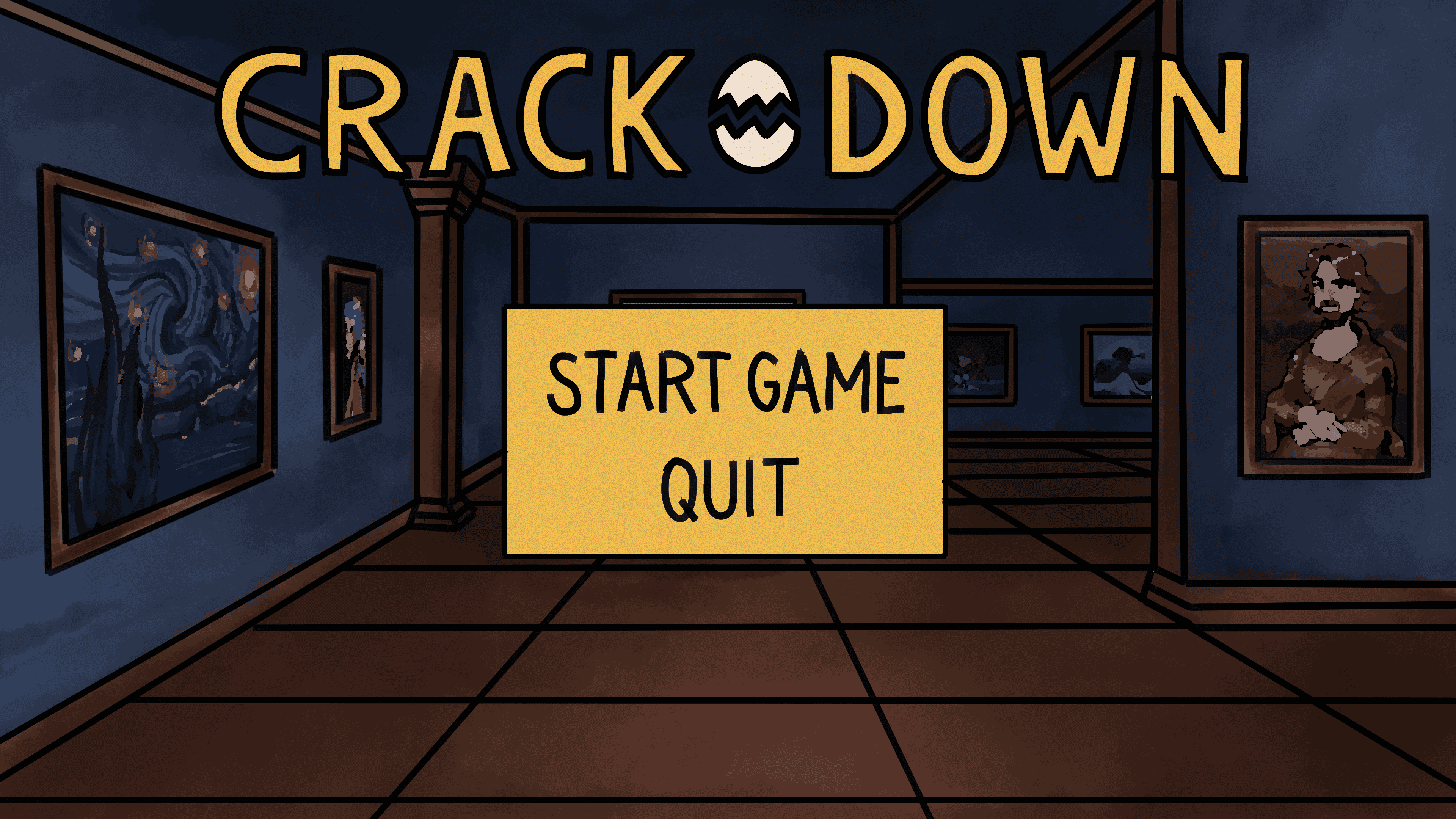 In CrackDown, you’ll step into a chaotic world of artistic sabotage in a fast-paced, absurd environment. A mysterious client has hired you to egg rival artworks in a gallery, and you must hit as many targets as possible and escape before the police arrive.